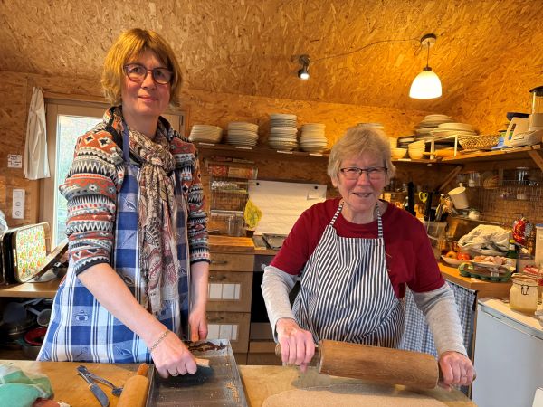 Die Brotbackgruppe ist auch fleißig und backt neben duftenden Broten auch wieder Kuchen im Holzbackofen.